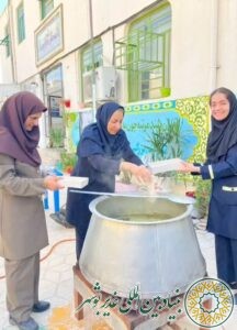 در پایان با طبخ آش نذری در فضای مدرسه از دانش آموزان پذیرایی بعمل آمد.