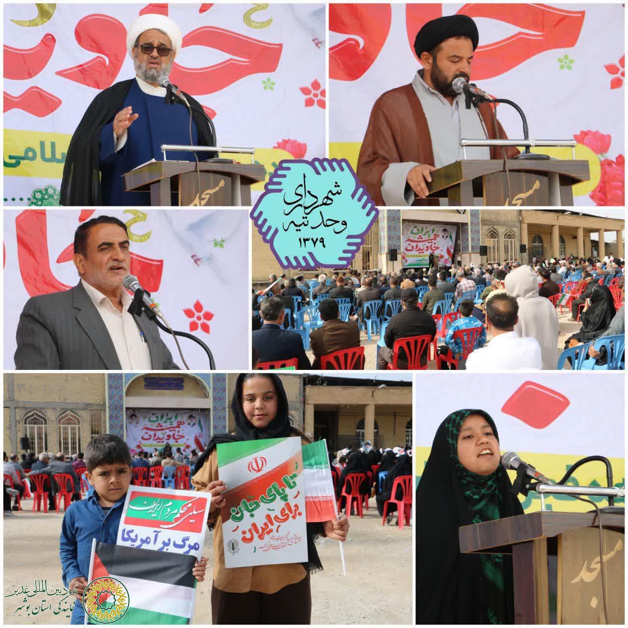 🌺 با حضور پر شور مردم ولایتمدار و مسئولان شهر وحدتیه(شهرستان دشتستان)، مراسم راهپیمایی در یوم الله ۲۲ بهمن امسال مانند سالهای قبل برگزار شد‌.